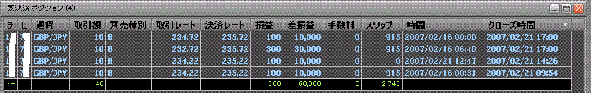 ただ、これらが決済されると235.22→238.22円と237.22→238.72円での300pipsと150pipsが計上されるだけです。