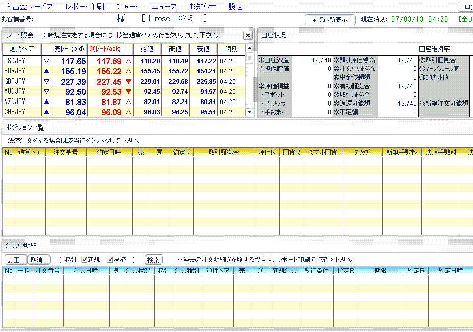 先程「ヒロセ通商」の口座にログインするとこうなっていました。